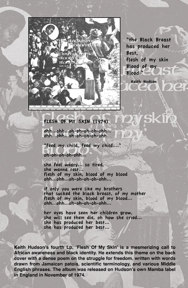 Keith’s concepts for the album were far more ambitious than anything else he had done to date. Having been exposed to the writings of Frantz Fanon on an earlier visit to England, the French West Indian political philosopher would have a profound influence on Keith’s lyrics. Fanon’s writings dealt with the effects of colonialism and the need for black liberation, emotionally, spiritually and even through armed revolution if necessary. Several thought processes from Fanon’s seminal work ‘Black Skin, White Masks’ can be heard in the lyrics of Keith’s ‘Flesh of My Skin’ Lp. Keith married these ideas to his own call for African-Caribbean awareness, with an emphasis on motherhood and matriarchy; a tribute to the five women in his life, his mother Ruth, his wife Jean, his former partner Norma, who was mother to three of his children, and to his two baby mamas, Beverley and Elice.